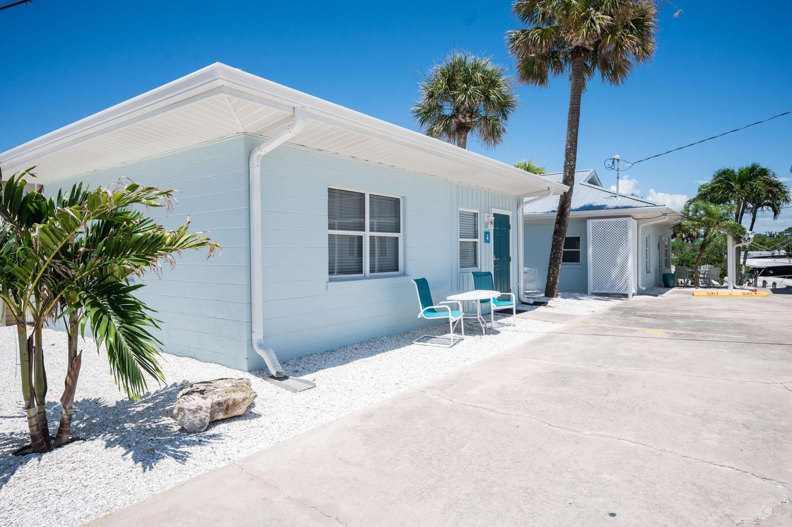 Ground floor bayside one bedroom condo. Recently updated with tropical decor. Full kitchen and small dinette table in living area. King size bed in bedroom plus queen sofa pullout sleeper in the living room. Sleeps 4.